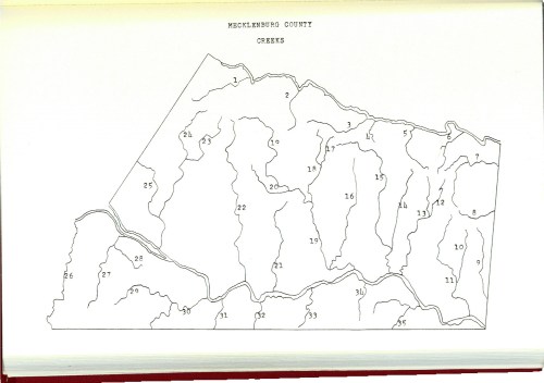 [4] Source for the creeks of Mecklenburg County: Katherine B. Elliott, Early Settlers, Mecklenburg County, Virginia, vol. 1 (Easley, SC: Southern Historical P, 1983 [1964]), pp. 73-74.