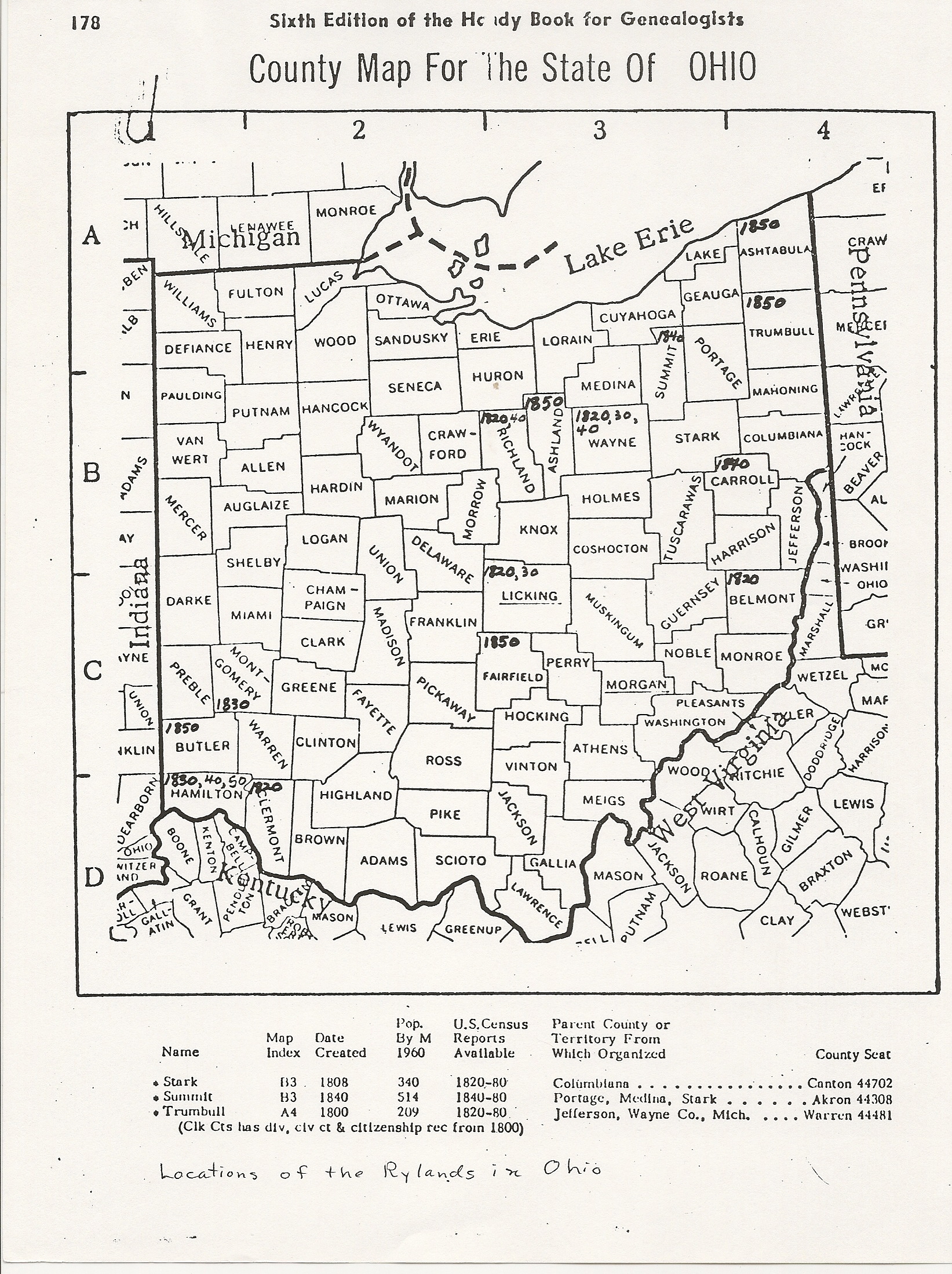 French traveler and culture critic De Tocqueville said American politics was local. In the first half of the 1840s William was elected trustee of Ashland County four years in a row (no doubt the local historian H. S. Knapp didn’t calculate the change of county lines). In any case, William was known around the county to be elected for four years in a row. It also showed he had community spirit; he cared about his immediate homeland. He wanted to see it managed properly. William Ryland proved that De Tocqueville was right.
