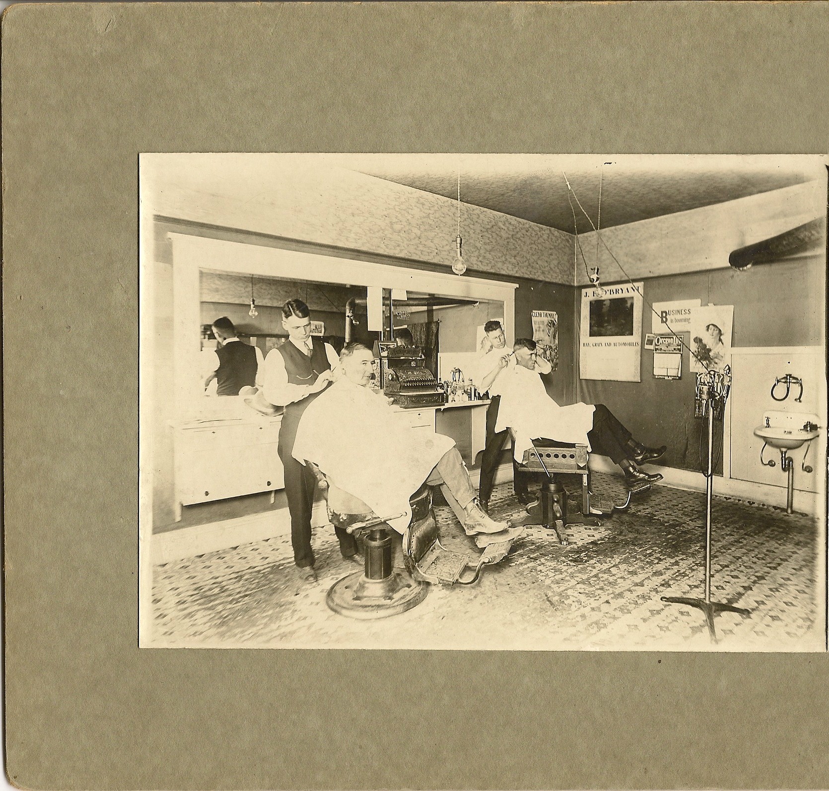 The barber shop was a man’s cozy world, vibrating with men’s lusty jokes and the heated talk of politics and prohibition. In the barber shop a man could loosen his collar and enjoy freedom from women’s whims.