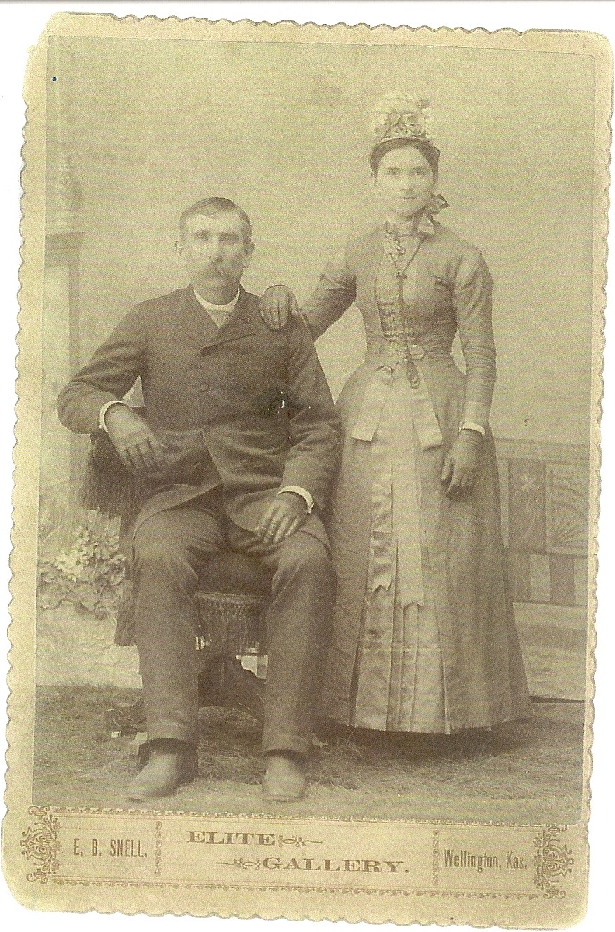 She was born September 23, 1860 (according to the 1870, 1880, and 1900 Censuses she was born in 1861), in Warren County, KY. She first married William Ryland on December 4, 1883 in S. Haven, Sumner County, KS (he died on May 21, 1888). Then she married Carl Frederickson on April 3, 1890, in Portland, Sumner County, Kansas. She died December 27, 1902 in South Haven, Sumner County, KS and is buried in the South Haven Cemetery.